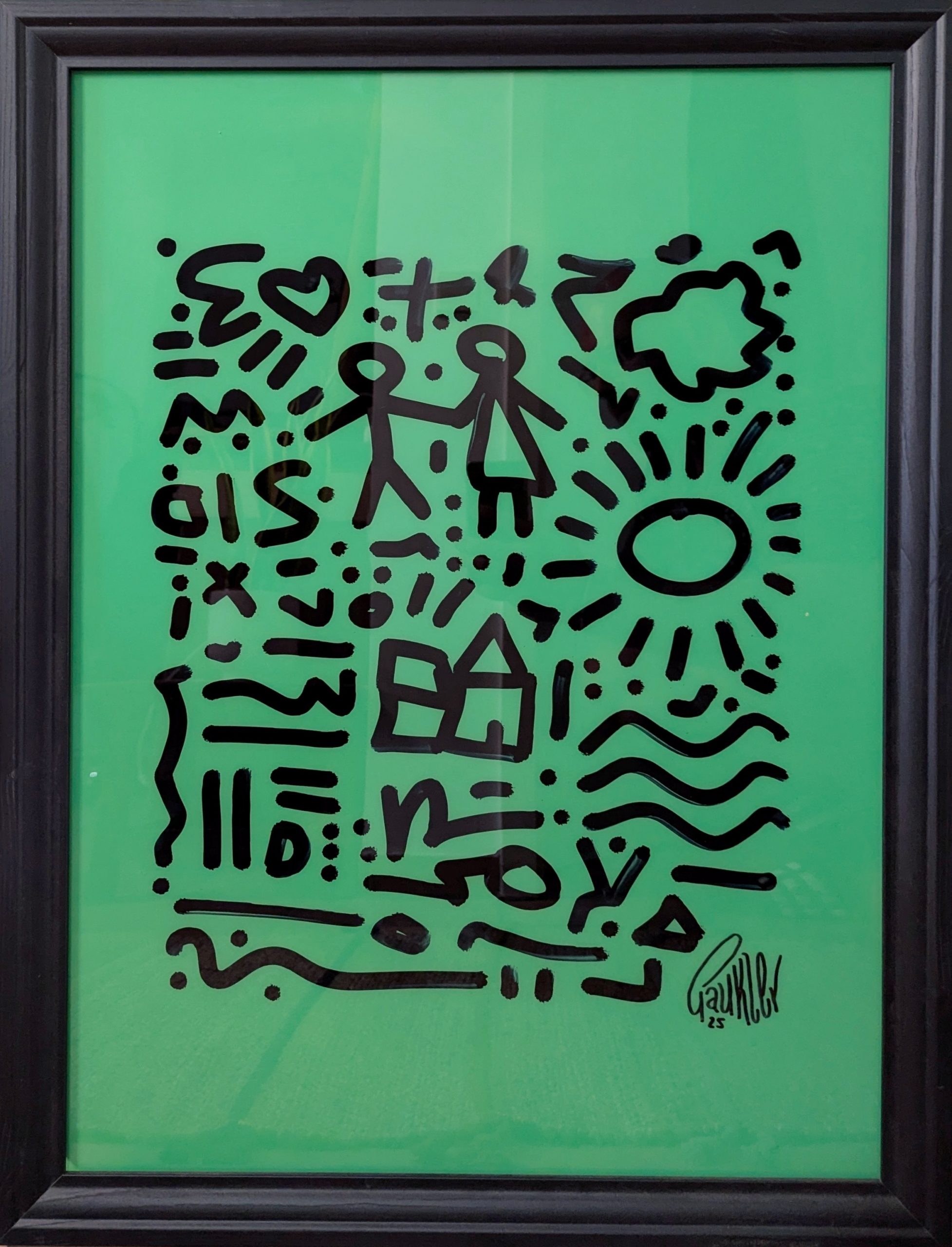 Medium: Marker und Sprühdose auf Kunststoffglas im Schwarzlackiertem Rahmen