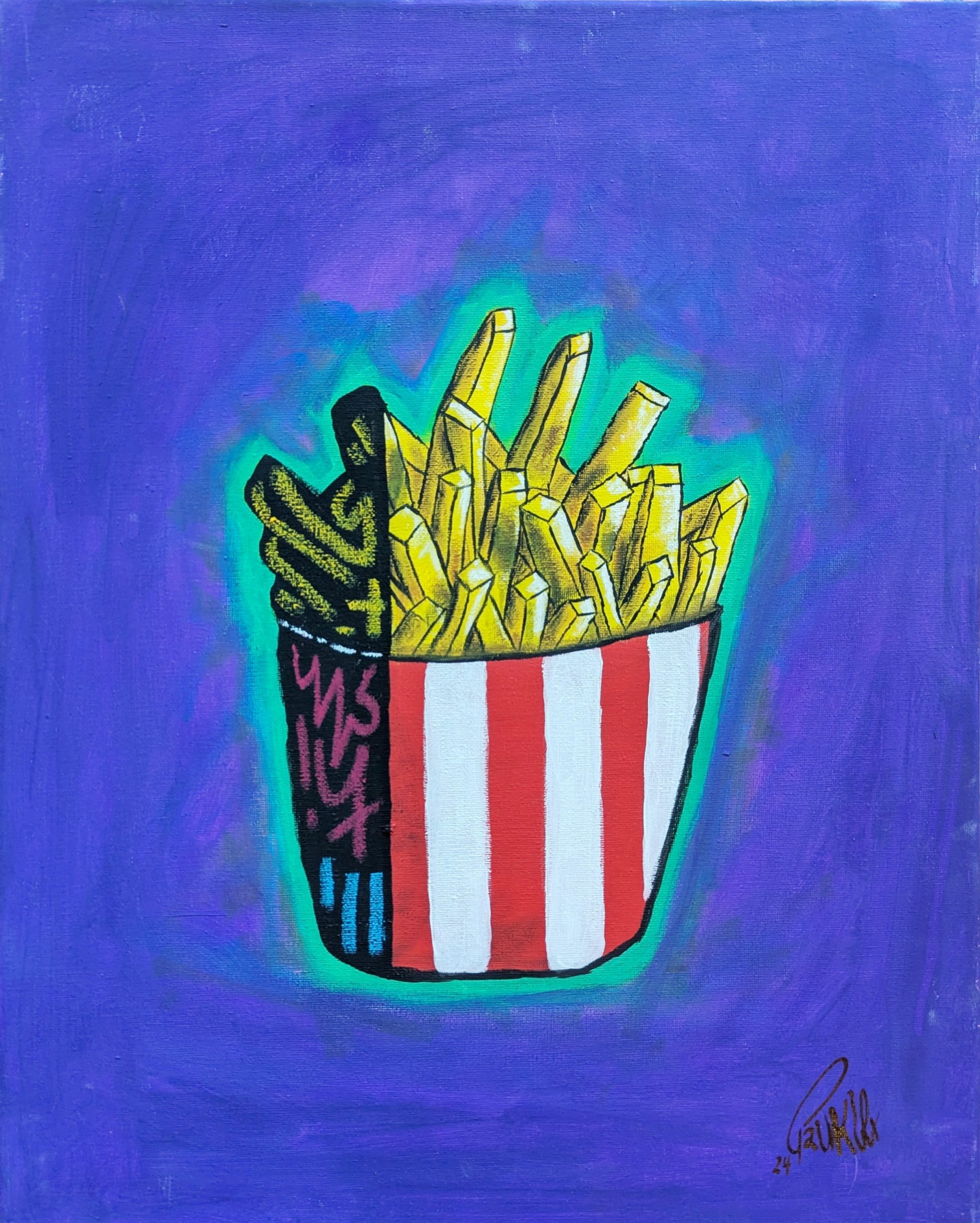 Fritten. Acryl & Wachsmalkreide auf Keilrahmen.