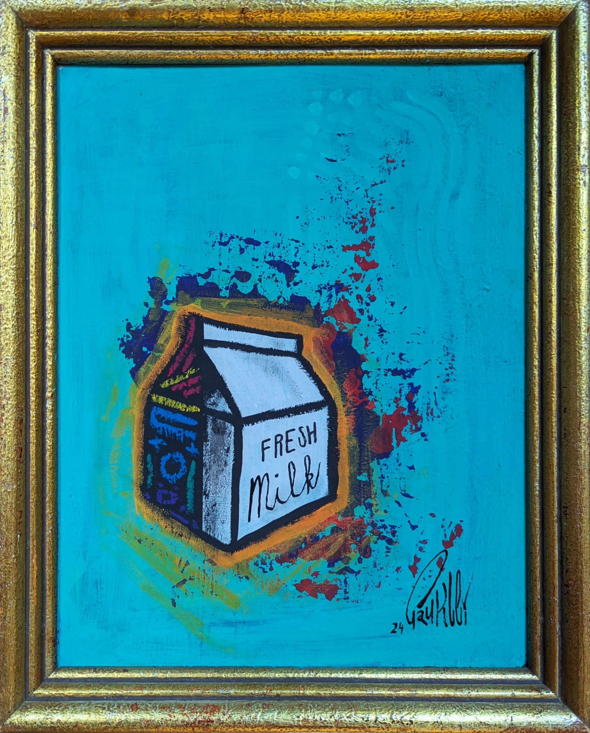 Milk. Acryl & Wachsmalkreide auf Keilrahmen mit goldenem Vintage Rahmen