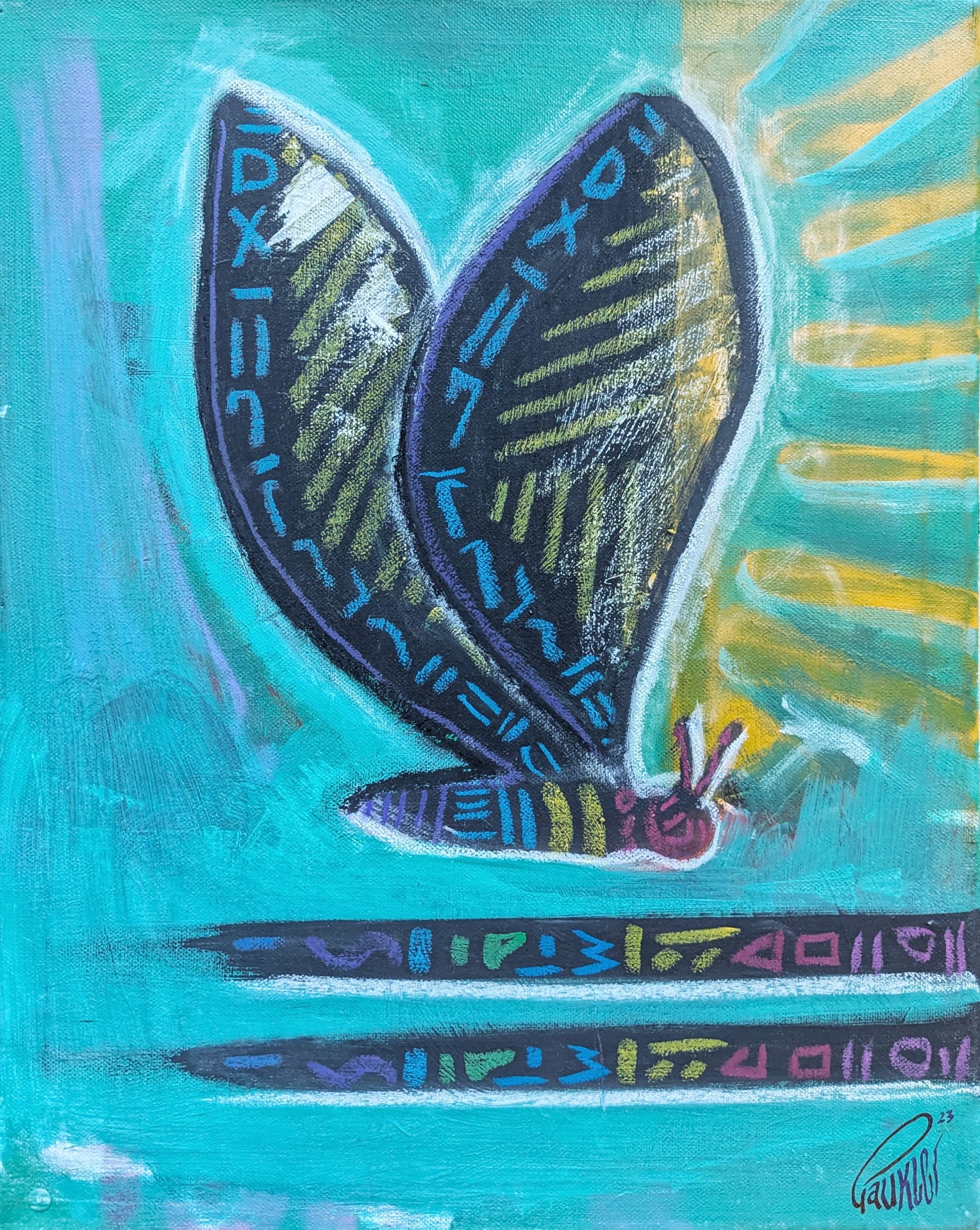 Schmetterling. Acryl & Wachsmalkreide auf Keilrahmen